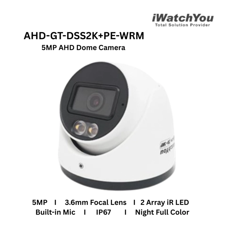 iWatchYou AHD-GT-DSS2K+PE-WRM Dome AHD Camera 5mp (Night Full Color | Built-in Mic)