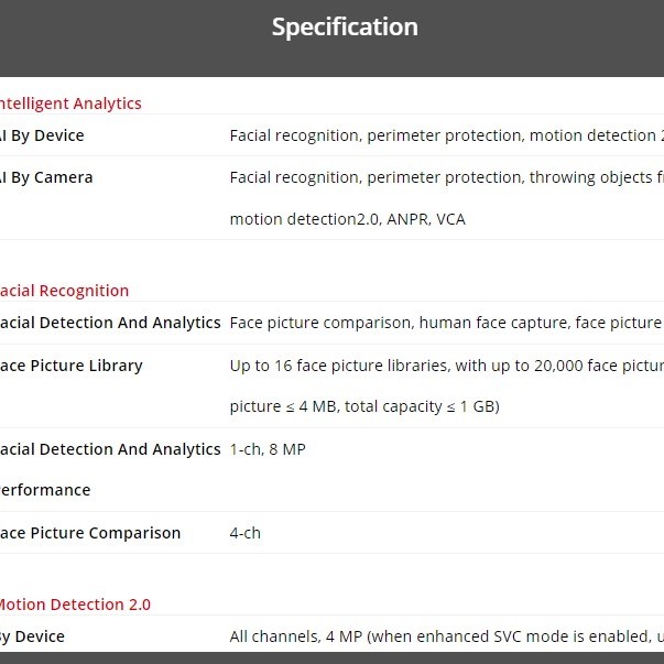 ✓ Up to 2-ch@12 MP or 3-ch@8 MP or 6-ch@4 MP or 12-ch@1080p decoding capacity