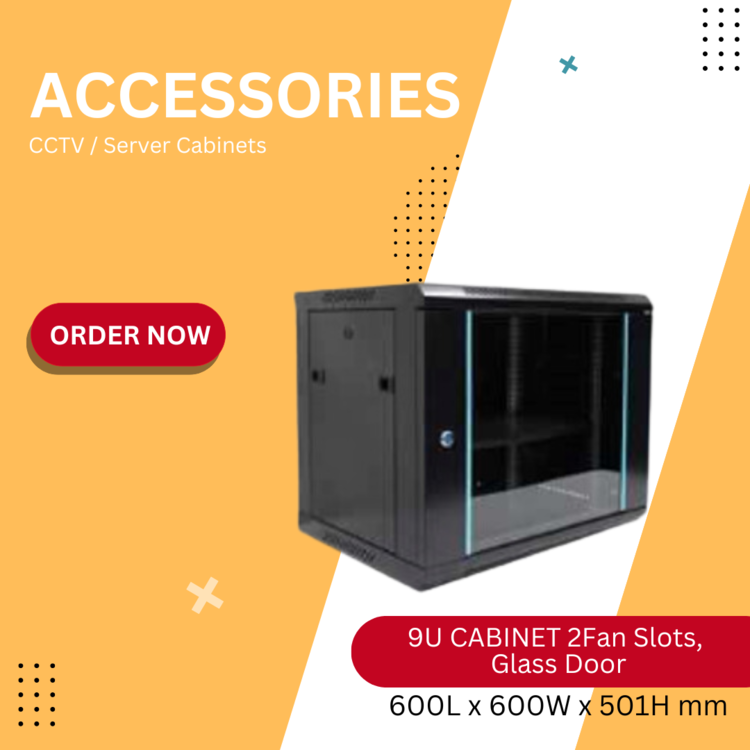 9U CABINET 600L x 600W x 501H mm / 2Fan Slots , Glass Door [ORDER BASIS]
