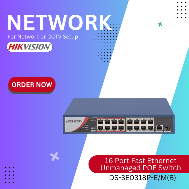 Hikvision DS-3E0318P-E/M(B) 16 Port Fast Ethernet Unmanaged POE Switch [ORDER BASIS]