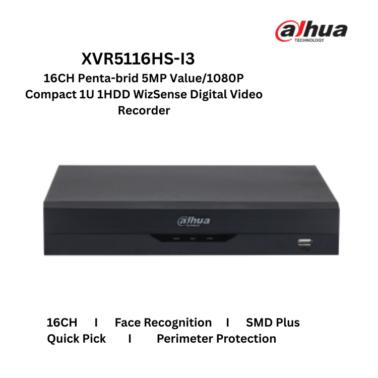 Dahua XVR5116HS-I3 16CH Penta-brid 5MP Value/1080P Compact 1U 1HDD WizSense Digital Video Recorder [ORDER BASIS]