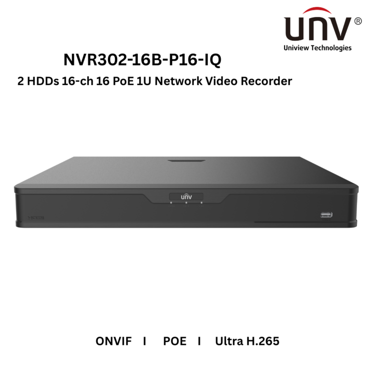 UNV NVR302-16B-P16-IQ 2 HDDs 16-ch 16 PoE 1U Network Video Recorder [ORDER BASIS]