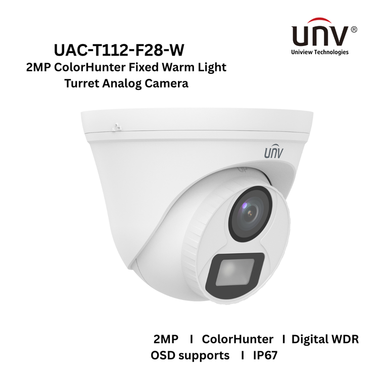 UNV UAC-T112-F28-W 2MP ColorHunter Fixed Warm Light Turret Analog Camera (Order Basis)