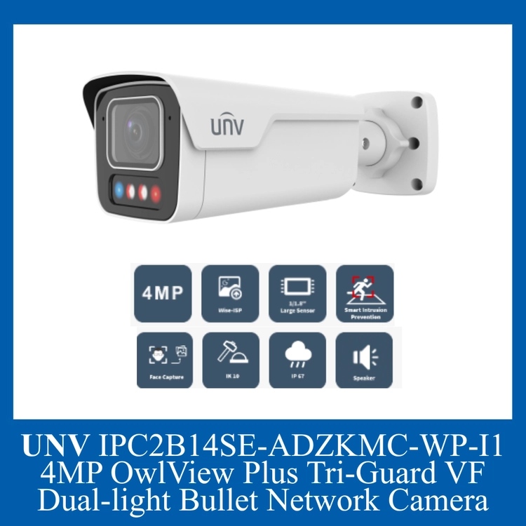 UNV IPC2B14SE-ADZKMC-WP-I1 4MP OwlView Plus Tri-Guard VF Dual-light Bullet Network Camera (ORDER BASIS)